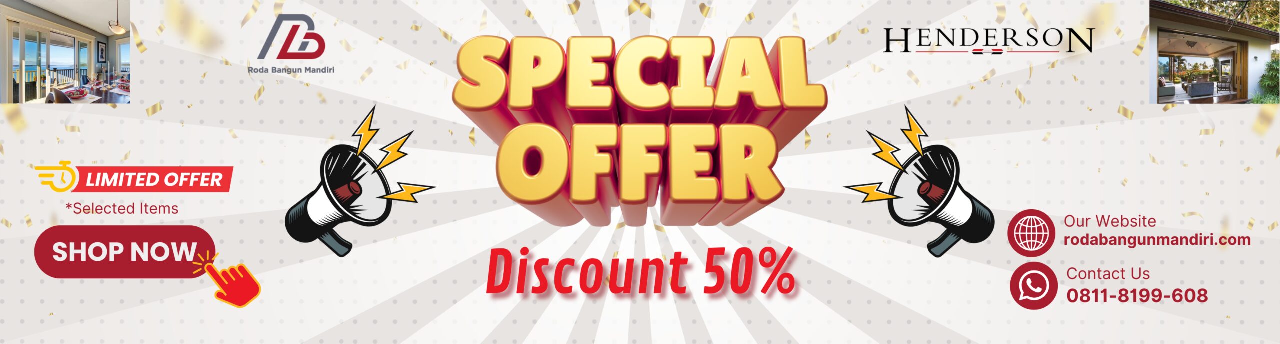Ingin segera meng-upgrade ruangan Anda? Saat ini di Roda Bangun Mandiri sedang berlangsung Special Offer dengan Diskon Hingga 50% untuk produk sistem rel PC Henderson unggulan, termasuk:
